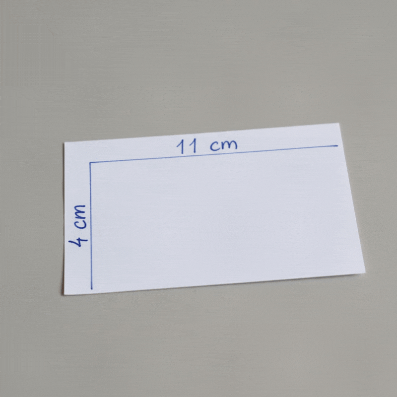 - Découpez un rectangle de H : 4 cm x L : 11 cm sur votre papier.