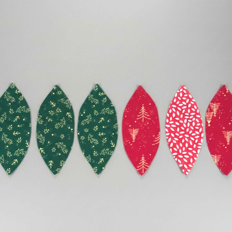 Pour un rendu harmonieux, mixez un tissu imprimé (sapins, étoiles, motifs de Noël) avec un uni coordonné. Si vous cherchez des tissus spécialement pensés pour les fêtes, privilégiez des collections dédiées — motifs festifs, couleurs traditionnelles (rouge, vert, doré) ou palettes contemporaines.